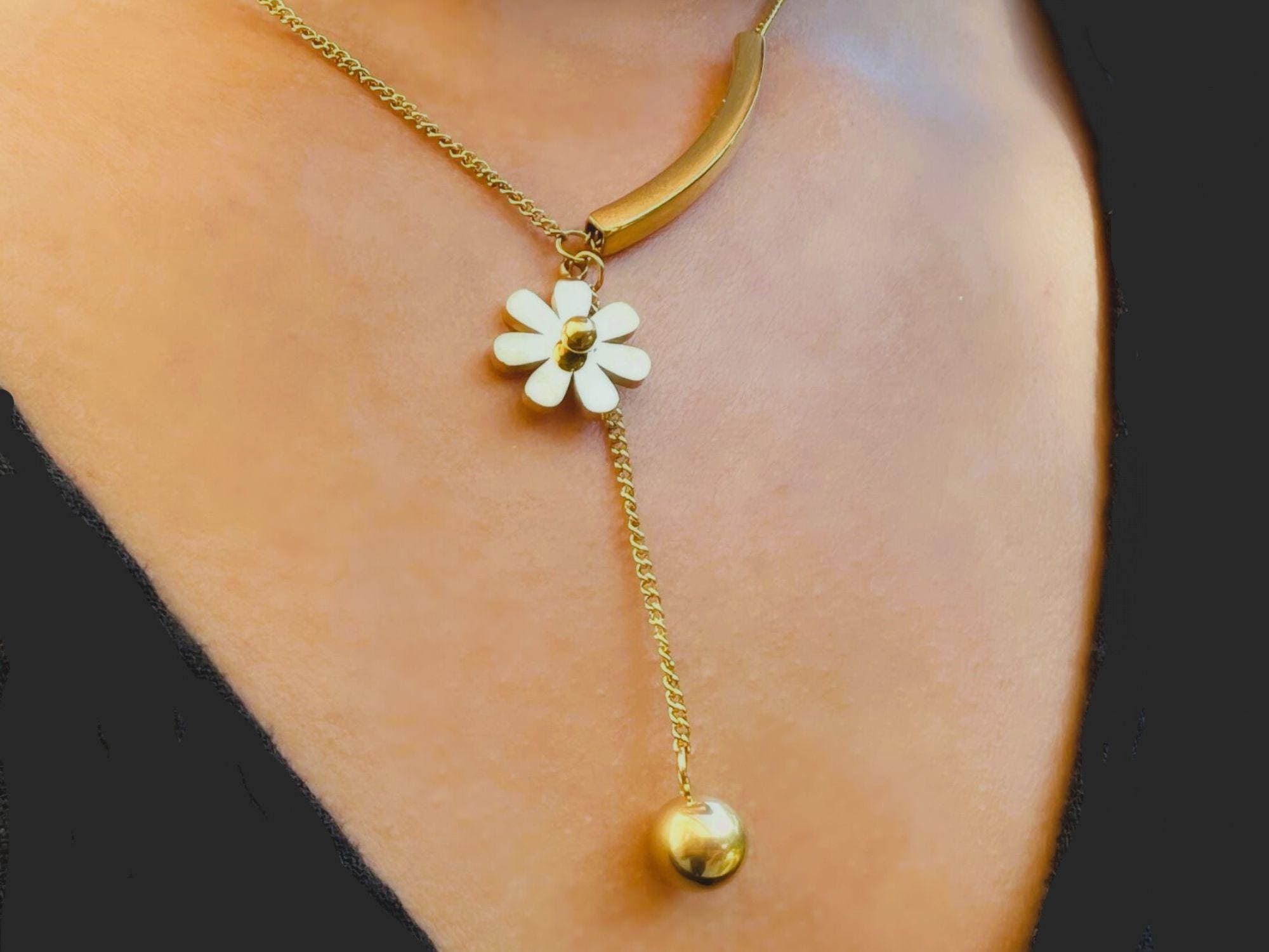 This titanium stainless steel daisy necklace features a delicate tassel chain design. A youthful, durable gift for girlfriends, students, or everyday wear.FREE SHIPPING ON ORDERS OVER $35